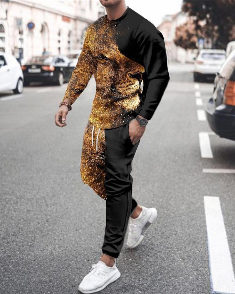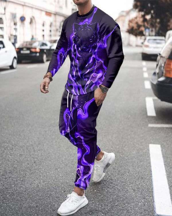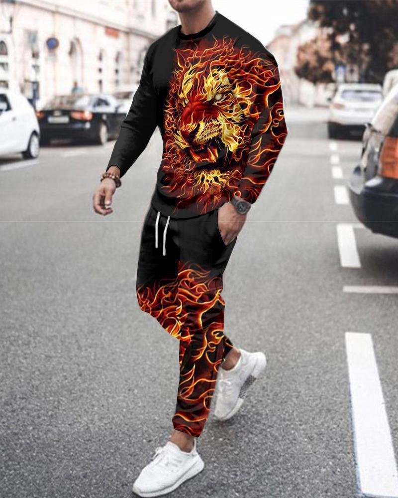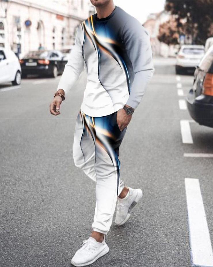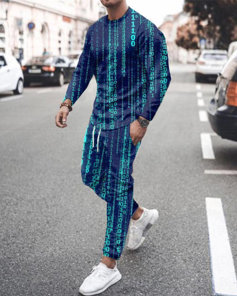[Σετ δύο τεμαχίων] Ανδρικό 3d ψηφιακή εκτύπωση φθινοπώρου και χειμώνα 2022 φαρδύ μακρυμάνικο πουλόβερ με στρογγυλή λαιμόκοψη + αθλητικό παντελόνι [κοστούμι]