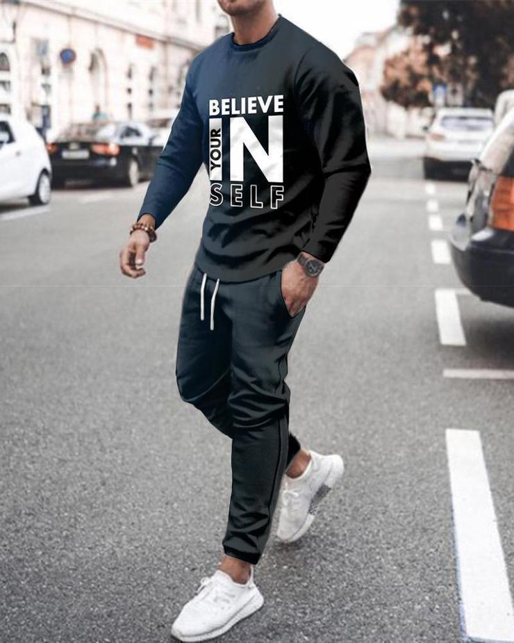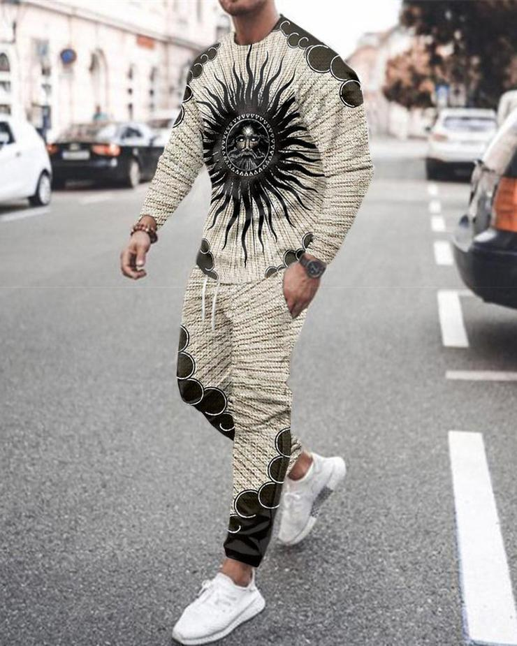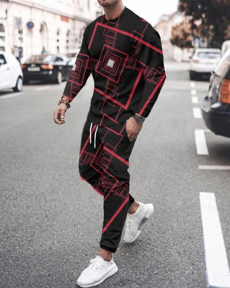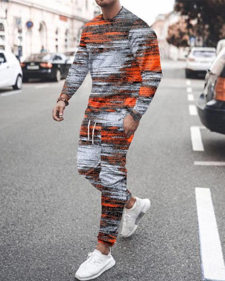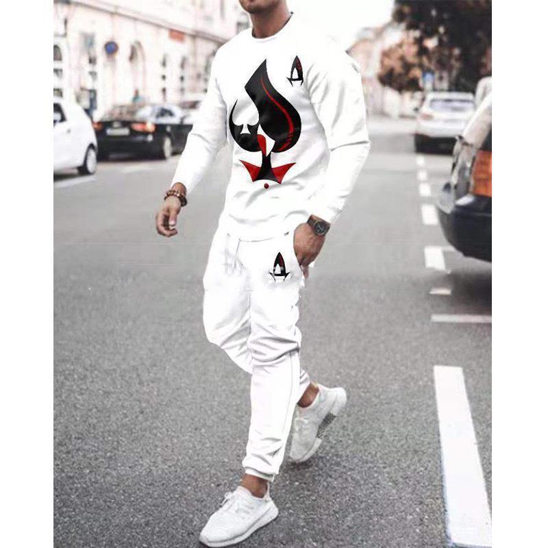 [Σετ δύο τεμαχίων] Ανδρικό 3d ψηφιακή εκτύπωση φθινοπώρου και χειμώνα 2022 φαρδύ μακρυμάνικο πουλόβερ με στρογγυλή λαιμόκοψη + αθλητικό παντελόνι [κοστούμι]